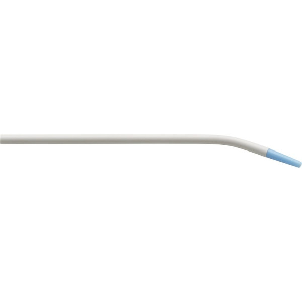 Chirurgische Absaugkanülen mit gebogener Spitze. Die Einmalkanülen lassen sich verwenden auf Absauganlangen mit einem Ansatz von 11 Millimetern oder 16 Millimetern. Die Absaugspitze ist für bessere Sichtbarkeit blau eingefärbt. Durch Abnehmen der Spitze lässt sich die Absaugöffnung von drei auf fünf Millimeter erweitern. Die Kanülen sind einzeln steril verpackt und bis zu fünf Jahre steril lagerfähig. Empfohlen für sterile Eingriffe in der Mund-, Kiefer-, Gesichtschirurgie und bei implantologischen Operationen.