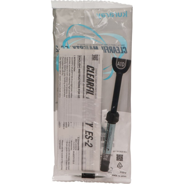CLEARFIL MAJESTY™ ES-2 wurde von Kuraray Noritake entwickelt, um die ästhetischen Fragen in der täglichen Arbeit zu lösen. Als lichthärtendes Universal-Komposit geht CLEARFIL MAJESTY™ ES-2 dabei völlig neue Wege! Erstmals ist es dem Zahnarzt möglich, nach einer stark vereinfachten Farbnahme-Methode basierend auf dem VITA-Farbschlüssel vorzugehen, um die hochästhetischen Herausforderungen zu meistern. So ist es nun möglich, eine perfekte Abstimmung zwischen direkten und indirekten Kompositen zu realisieren. CLEARFIL MAJESTY™ ES-2 bietet, anhand seines breitausgelegten Farbspektrums die Möglichkeit, zwischen der Einschicht-Technik (Klassik) oder der Mehrschicht-Technik (Premium) mit dentin und enamel zu wählen. Die Farbwahl ist aufgrund des intuitiven Farbringes einfach, zuverlässig und perfekt auf den natürlichen Zahn abgestimmt. Spritze 3,6 g A1D