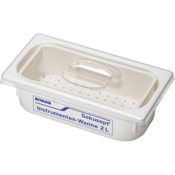 Sekusept Instrumentenwanne 2 Liter.Für die Desinfektion von InstrumentenKomplett mit Siebeinsatz und DeckelAbmessungen (innen) ca. 280 x 128 mm, (außen) ca. 325 x 176 x 100 mm Sekusept Instrumentenwanne 8 Liter.Für die Desinfektion von Instrumenten und Anästhesie-ZubehörKomplett mit Siebeinsatz und DeckelAbmessungen (innen) ca. 300 x 270 mm (außen) ca. 354 x 355 x 200 mm Stück Instrumentenwanne für 8 Liter