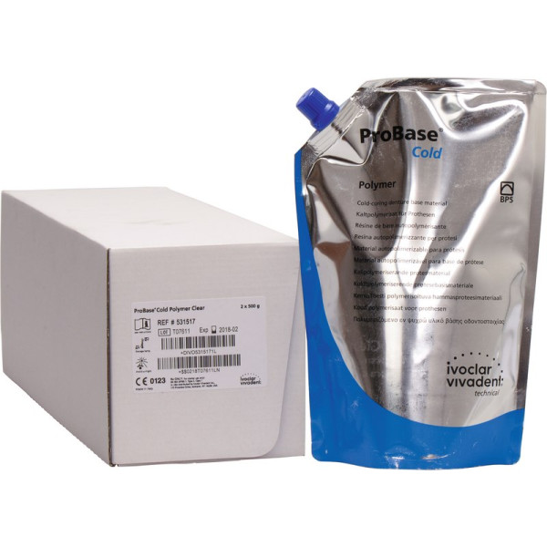Das kalthärtende ProBase® Cold zeichnet sich besonders durch hervorragende Fließ- und Modelliereigenschaften aus. Es lässt sich in der Gieß- und Stopftechnik anwenden und ermöglicht durch die hervorragenden Materialeigenschaften stabile Prothesenkörper. Entspricht ISO EN 1567. IndikationReparaturenTeil- und KombinationsprothetikUnterfütterungenTotalprothesen VorteileBequem anwendbarForm- und Farbstabil Weitere FarbenPink-V, geadertPink-V-ImplantSUS-L, geadertUS-PClear Packung 2 x 500 g Pulver clear
