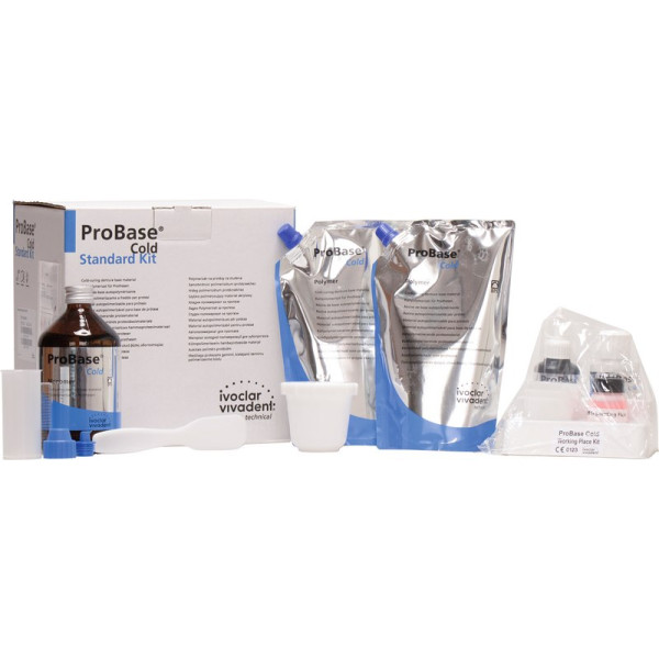Das kalthärtende ProBase® Cold zeichnet sich besonders durch hervorragende Fließ- und Modelliereigenschaften aus. Es lässt sich in der Gieß- und Stopftechnik anwenden und ermöglicht durch die hervorragenden Materialeigenschaften stabile Prothesenkörper. Entspricht ISO EN 1567. IndikationReparaturenTeil- und KombinationsprothetikUnterfütterungenTotalprothesen VorteileBequem anwendbarForm- und Farbstabil Weitere FarbenPink-V, geadertPink-V-ImplantSUS-L, geadertUS-PClear Standardpackung 2 x 500 g Pulver US-P, 500 ml Flüssigkeit, 1 Arbeitsplatzsortiment, 1 Anmischbecher mit Deckel, 1 Anmischspatel