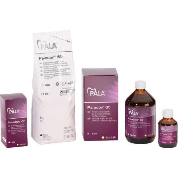 Das legendäre Heißpolymerisat. Als Erfinder der heißpolymerisierenden Prothesenkunststoffe setzt Heraeus seit 75 Jahren mit dem bewährten Paladon Maßstäbe. Seine beständig weiter entwickelten mechanischen Produkteigenschaften ermöglichen eine sehr anwenderfreundliche und variable Verarbeitung und gewährleisten gleichzeitig auf wirtschaftliche Weise die Herstellung qualitativ hochwertiger Prothesen. Paladon® 65 lässt sich auf einfache Weise ohne komplizierte Zusatzgeräte verarbeiten. IndikationTotalprothetik und TeilprothetikErweiterungenIndirekte Unterfütterungen VerarbeitungStopf-Press VerfahrenInjektionsverfahren mit Palajet Packung 1 kg Pulver farblos