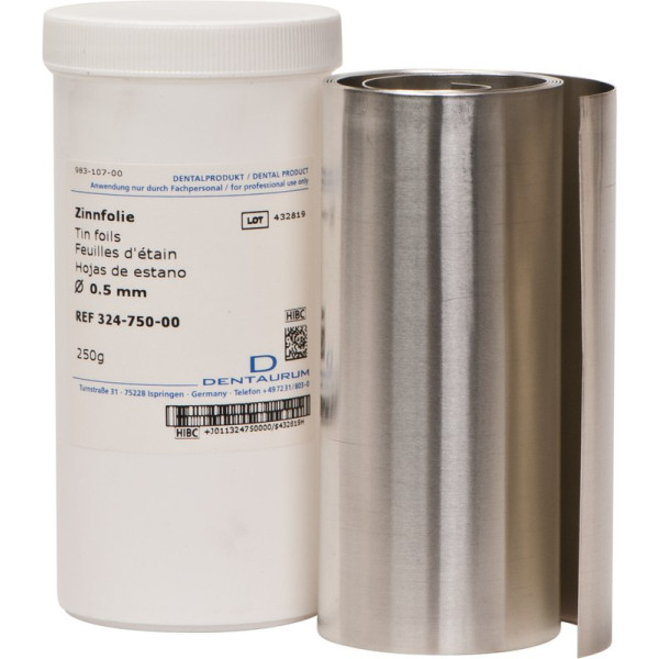 Zinnfolie - Rolle 250 g, Länge 68 cm, Stärke 0,50 mm - 324-750-00
