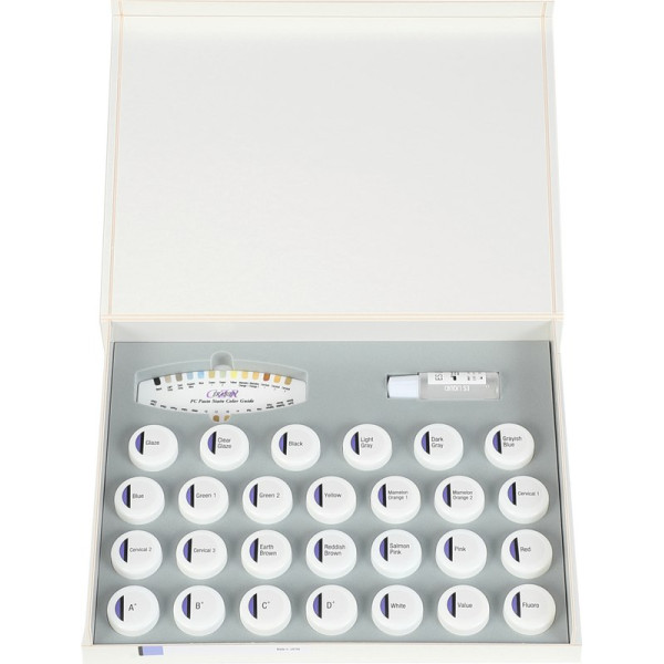 Die Erweiterung einer neuen Malfarbenpaste für Oberflächen zu der CERABIEN™ ZR-Serie ermöglicht eine einfache Charakterisierung von Vollzirkon-Restaurationen. FC Paste Stain ist verfügbar in insgesamt 27 Schattierungen, für die Reproduktion einer Vielzahl von Farben. Die Ergänzung zu den Blue und Gray Farben (Light Gray, Dark Gray, Grayish Blue, & Blue) ermöglicht eine einfache Reproduktion der gräulichen Transparenzeffekte für den Inzisalbereich. Zwei Glasurarten (Glaze & Clear Glaze) vereinfachen die Kontrolle über die Transparenz der gesamten Krone. Dose 3 g grayish blue