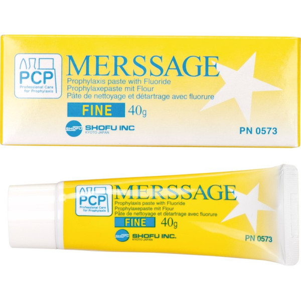 Die Fluoridhaltigen MERSSAGE Pasten beseitigen Zahnbelag und erzielen ein glatt polierte Zahnoberfläche. MERSSAGE regular wird bei stärkeren Zahnverfärbungen und zu Beginn einer Prophylaxe-Behandlung, sowie zur Politur von Zahnoberflächen und zur Politur nach der Entfernung von KFO-Geräten angewendet. MERSSAGE fine verwendet man bei leichten Verfärbungen, zur Politur nach der Zahnsteinentfernung und nach dem Bleichen. MERSSAGE plus ist geeignet zur Politur nach Zahnsteinentfernung und nach dem Bleichen, zur Prävention von neuen Verfärbungen sowie zur Reinigung von Füllungsmaterialien und Politur der Oberfläche. normal Bimsstein, Bindemittel, Tenside, Geschmacksstoff, Farbstoff, Natriummonofluorophosphat (0.34%) fein Kalziumkarbonat, Silika, Bindemittel, Tenside, Geschmacksstoff, Farbstoff, Natriummonofluorophosphat (0.34%) Plus Silika, Bindemittel, Tenside, Geschmacksstoff, Farbstoff, Natriumfluorid (0.21%) Tube 40 g Zitrone, mit Fluorid
