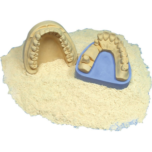 Ein schneller Superhartgips zum Erledigen von eiligen Reparaturen. Dieser Gips ist aber auch für Gegenbiss- und Situationsmodelle geeignet. Aufgrund der kurzen Abbindezeit ist das Modell bereits nach 10 Minuten entformbar und kann weiterbearbeitet werden. AnwendungsempfehlungStumpfmodelleZahnkränzeSägeschnittmodelleMeistermodelle in EM/NEM und VMK-TechnikKontrollmodelle Beutel 5 kg Superhartgips goldbraun