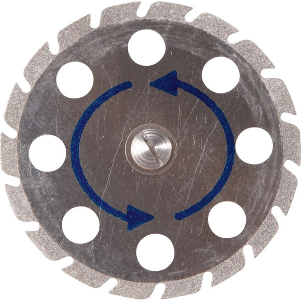 Galvanisch diamantbeschichtete Trennscheibe zur Trennung von Sägestümpfen. Ermöglicht schnelle und gerade Schnitte durch den Zahnkranz. Dank des stabilen Trägermaterials zeichnen sich die Trennscheiben durch optimale Laufruhe aus. Perforationen in den Scheiben sorgen für Transparenz beim Schneiden. Stück Scheibe montiert Ø 45 x 0,35 mm