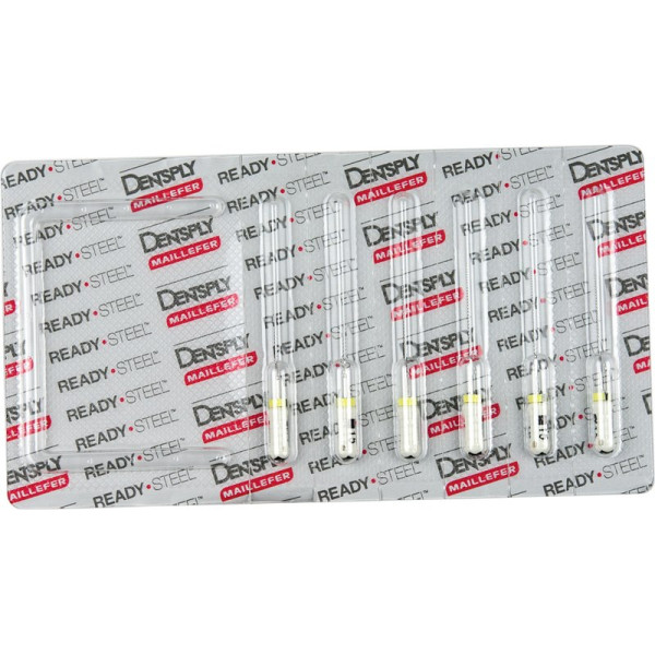 Flexo-Instrumente aus Edelstahl verfügen dank ihres dreieckigen Querschnitts über eine größere Flexibilität im Vergleich zu herkömmlichen Handinstrumenten. Die Spitze der Instrumente ist abgerundet und nicht schneidend. Bis Größe 030 auch in 18 mm lieferbar.K-Flexofile 21, 25 und 31 mm Ref. A 012C. Packung 6 Feilen 25 mm ISO 015