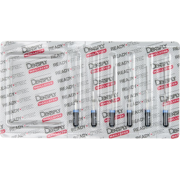 Flexo-Instrumente aus Edelstahl verfügen dank ihres dreieckigen Querschnitts über eine größere Flexibilität im Vergleich zu herkömmlichen Handinstrumenten. Die Spitze der Instrumente ist abgerundet und nicht schneidend. Bis Größe 030 auch in 18 mm lieferbar. K-Flexoreamer 21, 25 und 31 mm Ref. A 011C. Packung 6 Flexoreamer 31 mm ISO 040