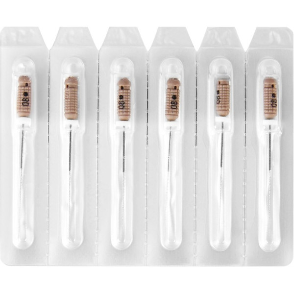 Hochwertige und ISO-konform exakt hergestellte Endo-Instrumente "Made by Sendoline". Sie haben eine sehr gute Schneidleistung und eine hohe Bruchsicherheit. Die Instrumente sind farbcodiert nach ISO-Größen und sterilisierbar bis 200 °C. Der Griff ist durch die ergonomische Grippfläche rutschfest und das Instrument damit sicher zu verwenden. In einer Blisterpackung, die eine hygienische Einzelentnahme gewährleistet, befinden sich 6 Instrumente, die mit einem Silikonstopper ausgestattet sind. Es handelt sich um ein single use Produkt, dass vor dem Einsatz der Sterilisation bedarf. Packung 6 Feilen 31 mm ISO 008
