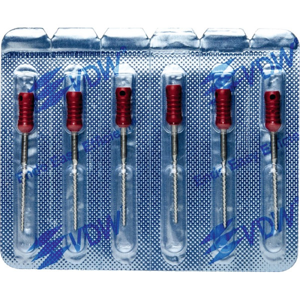 Hocheffiziente Aufbereitung in feilender Zugbewegung.Hohe SchneidleistungBruchsichere, hochflexible Stahllegierung mit hoher GefügereinheitDie inaktive Spitze führt das Instrument sicher im KanalDeutliche Kennzeichnung des Instrumententyps und der ISO Größe am GriffRöntgenopake KalibrierringeZusätzlicher Längenaufdruck am GriffMit vormontierten Silikon-Stoppern Blisterpackung 6 Feilen 25 mm ISO 110