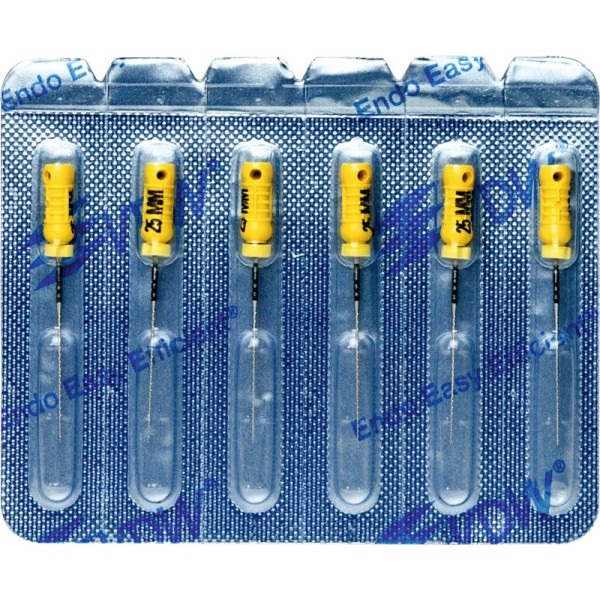 Hocheffiziente Aufbereitung in feilender Zugbewegung.Hohe SchneidleistungBruchsichere, hochflexible Stahllegierung mit hoher GefügereinheitDie inaktive Spitze führt das Instrument sicher im KanalDeutliche Kennzeichnung des Instrumententyps und der ISO Größe am GriffRöntgenopake KalibrierringeZusätzlicher Längenaufdruck am GriffMit vormontierten Silikon-Stoppern Blisterpackung 6 Feilen 25 mm ISO 020