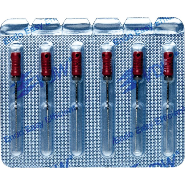 Hocheffiziente Aufbereitung in feilender Zugbewegung.Hohe SchneidleistungBruchsichere, hochflexible Stahllegierung mit hoher GefügereinheitDie inaktive Spitze führt das Instrument sicher im KanalDeutliche Kennzeichnung des Instrumententyps und der ISO Größe am GriffRöntgenopake KalibrierringeZusätzlicher Längenaufdruck am GriffMit vormontierten Silikon-Stoppern Blisterpackung 6 Feilen 31 mm ISO 025