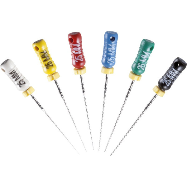 Hocheffiziente Aufbereitung in feilender Zugbewegung.Hohe SchneidleistungBruchsichere, hochflexible Stahllegierung mit hoher GefügereinheitDie inaktive Spitze führt das Instrument sicher im KanalDeutliche Kennzeichnung des Instrumententyps und der ISO Größe am GriffRöntgenopake KalibrierringeZusätzlicher Längenaufdruck am GriffMit vormontierten Silikon-Stoppern Blisterpackung 6 Feilen 31 mm ISO 040