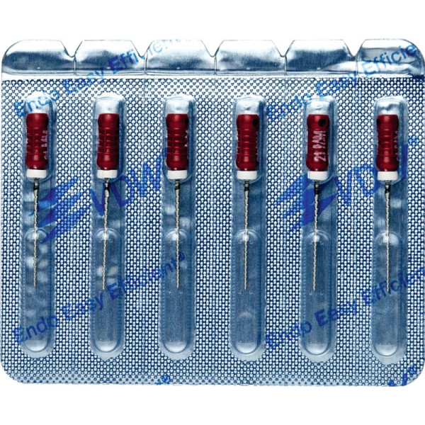 Hocheffiziente Aufbereitung in feilender Zugbewegung.Hohe SchneidleistungBruchsichere, hochflexible Stahllegierung mit hoher GefügereinheitDie inaktive Spitze führt das Instrument sicher im KanalDeutliche Kennzeichnung des Instrumententyps und der ISO Größe am GriffRöntgenopake KalibrierringeZusätzlicher Längenaufdruck am GriffMit vormontierten Silikon-Stoppern Blisterpackung 6 Feilen 21 mm ISO 055
