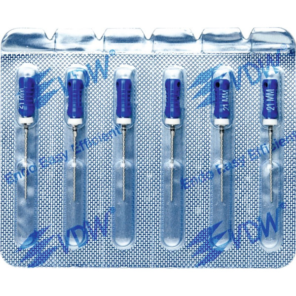 Hocheffiziente Aufbereitung in feilender Zugbewegung.Hohe SchneidleistungBruchsichere, hochflexible Stahllegierung mit hoher GefügereinheitDie inaktive Spitze führt das Instrument sicher im KanalDeutliche Kennzeichnung des Instrumententyps und der ISO Größe am GriffRöntgenopake KalibrierringeZusätzlicher Längenaufdruck am GriffMit vormontierten Silikon-Stoppern Blisterpackung 6 Feilen 21 mm ISO 060