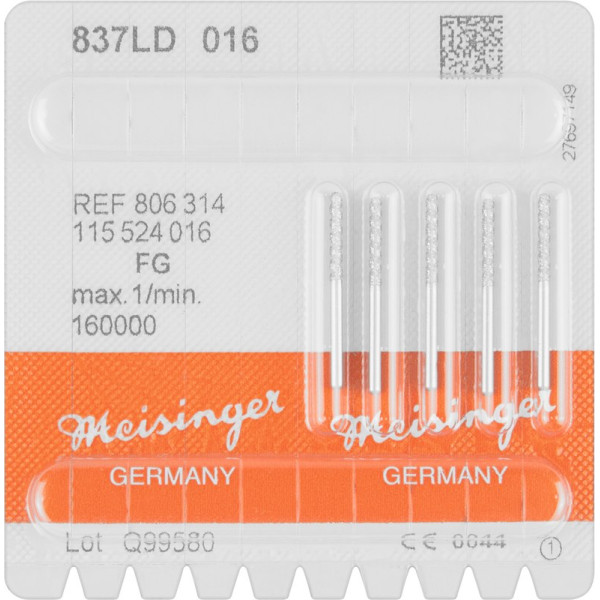 CE-Diamantinstrumente „COOL & EFFICIENT“ zeich nen sich vor allem durch eine optimierte Schleif kraft bei gleichzeitig kühlem Schleifen aus. Bewirkt werden diese positiven Eigenschaften durch eine exakt berechnete Linksdrallnut, die für den Transport des Abriebs sowie die optimale Zufuhr der Kühlflüssigkeit sorgt. Packung 5 Diamanten ISO 016, FG