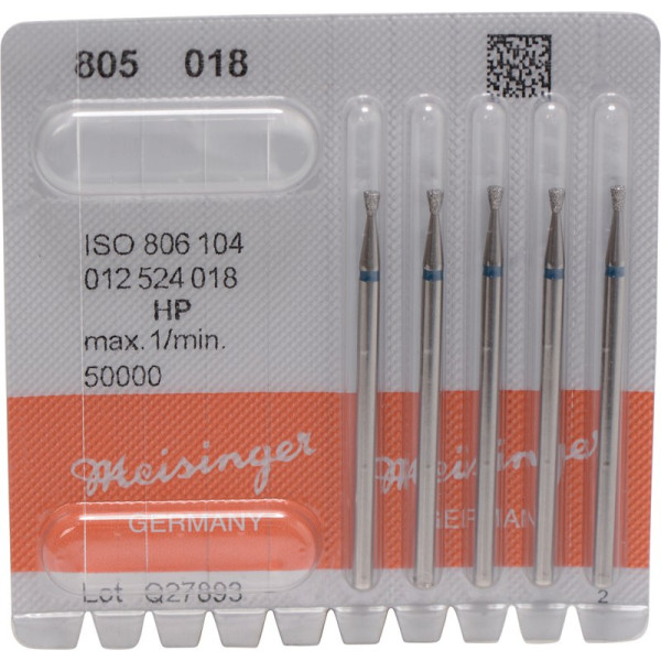 Diamanten 805 - Packung 5 Stück blau mittel, HP, Figur 012 umgek. Kegel, Kante scharf, 2,3 mm, ISO 018 - 806 104 012 524 018