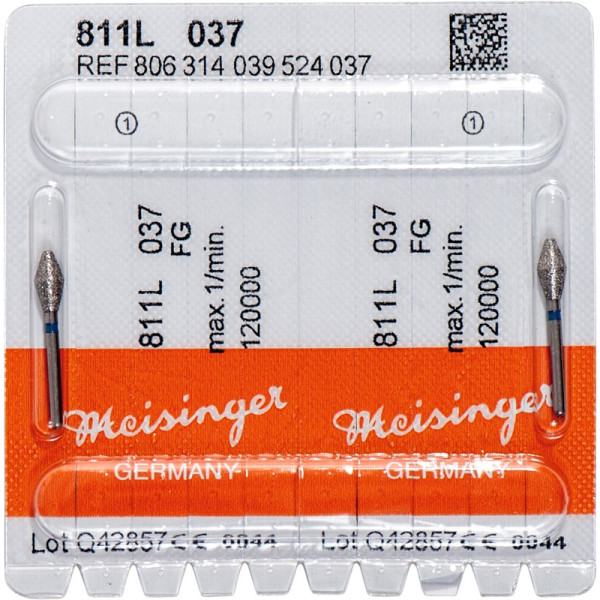 Diamanten 811 - Packung 5 Stück schwarz super grob, FG, Figur 038 Doppelkegel, 4 mm, ISO 033 - 806 314 038 544 033