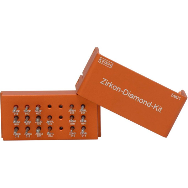 Die Instrumente sind speziell für die Anforderungen empfindlicher Zirkonoxid-Oberflächen entwickelt. Verschiedene Körnungen ermöglichen die optimale Bearbeitung unterschiedlicher Indikationen.Ausarbeitung tiefer KroneninnenflächenOptimal zur Bearbeitung der Ränder und zur interdentalen AusarbeitungZur okklusalen und lingualen ReduktionÜberarbeitung labialer Flächen und Entfernung von KontaktpunktenBedarf nur einer geringen Anpresskraft Kit 2 Diamanten Z0850 ISO 018, 1 Diamant Z850 rot ISO 018, 2 Diamanten Z0863 ISO 012, 1 Diamant Z863 rot ISO 012, 2 Diamanten Z0833 ISO 023, 1 Diamant Z833 rot ISO 023, 2 Diamanten Z801L ISO 010, 3 Diamanten Z0801 ISO 010, 3 Diamanten Z838L ISO 014