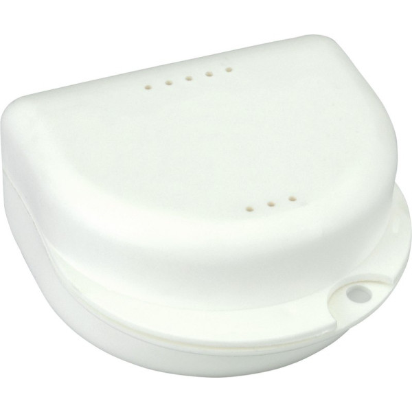 Stabile Transport- und Aufbewahrungsbox. Für Prothesen, kieferorthopädische Arbeiten etc. Schlagfest, sicherer Schnappverschluss und mit kleinen Lüftungsöffnungen. Mit Ihrer Anschrift ein idealer Werbeträger (ab 500 Stück). Mit trendiger Kordel. In zwei verschiedenen Höhen: Dento Box I = 2,5 cm. Dento Box II = 4 cm. Packung 10 Boxen weiß, Größe II