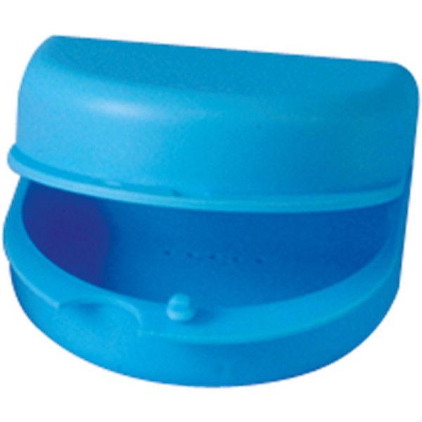 Stabile Transport- und Aufbewahrungsbox. Für Prothesen, kieferorthopädische Arbeiten etc. Schlagfest, sicherer Schnappverschluss und mit kleinen Lüftungsöffnungen. Mit Ihrer Anschrift ein idealer Werbeträger (ab 500 Stück). Mit trendiger Kordel. In zwei verschiedenen Höhen: Dento Box I = 2,5 cm. Dento Box II = 4 cm. Packung 10 Boxen blau, Größe II