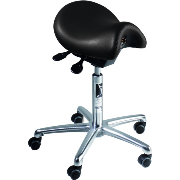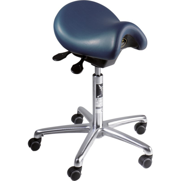 Ergotherapeutischer Spezialsitz. Einzigartige, patentierte Sattelform entspannt Lenden- und Rückenbereich. Mindert signifikant den Bandscheibendruck und reduziert Spannungsschmerzen. Erhält beim Sitzen die natürliche Becken- und Wirbelsäulenposition. Dank Neigungsverstellung der Sitzfläche: aufrechte Beckenposition und gerader Rücken auch in der Arbeitshaltung am Patienten. Sitzfläche aus Echtleder. Stück Sattelsitz atlantic blue, ohne Rückenlehne