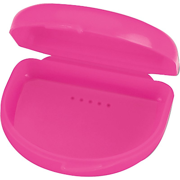 Stabile Transport- und Aufbewahrungsbox.Für Prothesen, kieferorthopädische Arbeiten etc. Schlagfest, sicherer Schnappverschluss und mit kleinen Lüftungsöffnungen.Mit Ihrer Anschrift ein idealer Werbeträger (ab 500 Stück). Mit trendiger Kordel.In zwei verschiedenen Höhen: Dento Box I = 2,5 cm. Dento Box II = 4 cm. Packung 12 Boxen pink, Größe I