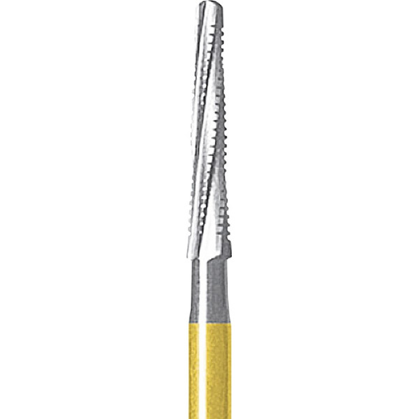 Spezial-Endobohrer mit langer, konischer Schneiden-Konfiguration und Querhiebverzahnung zur Erstellung eines trichterförmigen Zugangs in die Pulpakammer. Die Querhiebverzahnung gewährleistet einen ruhigen und effizienten Abtrag der Zahnsubstanz. Die abgerundete, nicht schneidende Bohrer-Spitze (save end) verhindert dabei das Eindringen in die Wurzelkanalwände und in den Pulpakammerboden. Anwendung nach dem Abtrag des Pulpakammerdaches mit dem Endobohrer 802L zur Erweiterung der Zugangsöffnung für eine erfolgreiche Wurzelbehandlung.WurzelkanalaufbereitungDrehzahl max. 100.000 U/min., Drehzahl opt. 80.000 U/min. Packung 3 Bohrer FG, Figur 219, Kopflänge: 9 mm, ISO 016