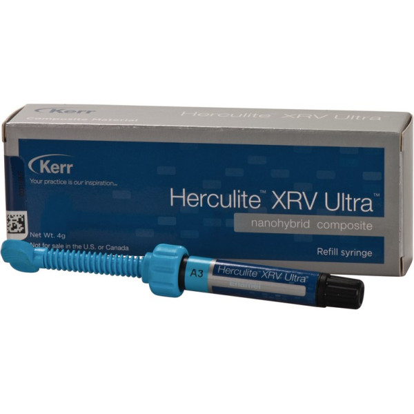 Seit mehr als 20 Jahren ist HERCULITE® XRV ein Standard im Bereich der Füllungsmaterialien. Basierend auf einer starken Marke wurde ein neues Füllungsmaterial entwickelt: HERCULITE® XRV Ultra™ Nanohybrid Komposit. Dieses innovative Komposit vereint hochmoderne Füllertechnologie mit erhöhter Ästhetik und optimierter Handhabung. Weitere überzeugende Eigenschaften sind die natürliche Opaleszenz und Fluoreszenz, erhöhte Verschleissfestigkeit, hohe Druckfestigkeit und überdurchschnittliche Bruchfestigkeit. Spritze 4 g schmelz A3