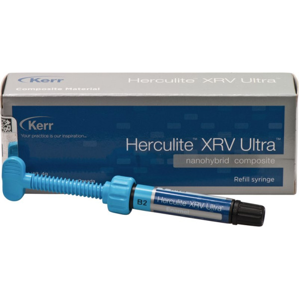 Seit mehr als 20 Jahren ist HERCULITE® XRV ein Standard im Bereich der Füllungsmaterialien. Basierend auf einer starken Marke wurde ein neues Füllungsmaterial entwickelt: HERCULITE® XRV Ultra™ Nanohybrid Komposit. Dieses innovative Komposit vereint hochmoderne Füllertechnologie mit erhöhter Ästhetik und optimierter Handhabung. Weitere überzeugende Eigenschaften sind die natürliche Opaleszenz und Fluoreszenz, erhöhte Verschleissfestigkeit, hohe Druckfestigkeit und überdurchschnittliche Bruchfestigkeit. Spritze 4 g schmelz B2