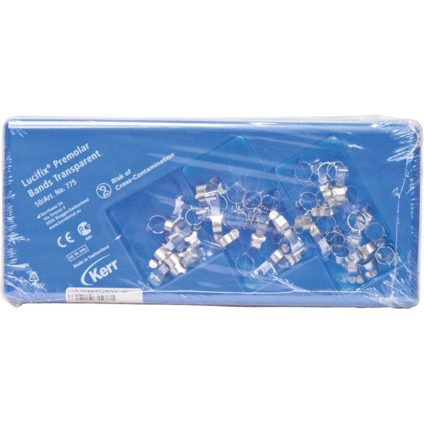 Die anatomisch vorgeformten, transparenten Lucifix® Matrizen mit integrierter Spannvorrichtung sind das ideale Matrizensystem für lichthärtende Kompositfüllungen und Kunststoff-Inlays im Seitenzahnbereich. Kein zusätzlicher Matrizenspanner erforderlich. Nachfüllpackung 50 Matrizen transparent, Prämolar