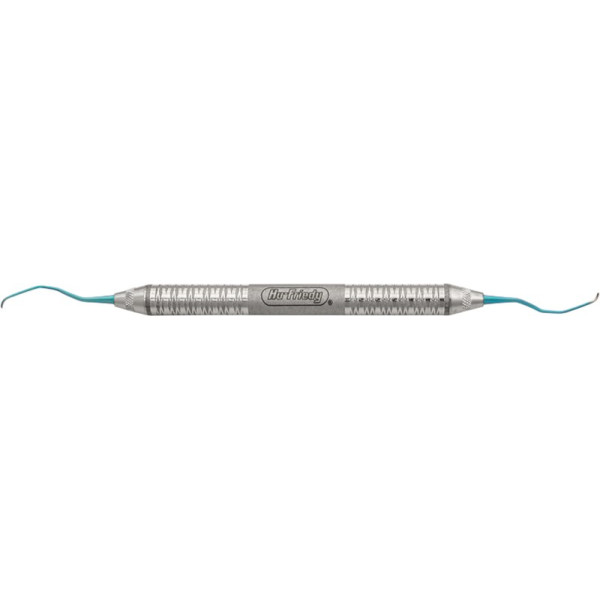 Erzielen Sie Bestleistungen mit der neuen, hochmodernen Reihe von Implantat-Instrumente aus Titan von Hu-Friedy. Diese Instrumente, die aus der gleichen Titanlegierung wie Implantate und Abutments bestehen, wurden für die Implantaterhaltung, Wundausschneidung und Biofilmentfernung fachkundig entwickelt und hergestellt und können sowohl supra- als subgingival verwendet werden. Optimierte Instrumenteneigenschaften zur Implantaterhaltung mit der Fähigkeit, Zahnstein und Biofilm zu entfernen Verbesserte Sichtbarkeit mit Hu-Friedys charakteristischem türkisgrünem eloxierten Titan Ergonomisches Feingefühl durch unseren Ergo-Griff, der einen großen Durchmesser und ein Kreuzschliff-Design für maximale Griffigkeit und festen Halt bietet Optimale Schärfe mit Schneidkanten, die nach der Eloxierung fein geschliffen und geschärft werden Gesteigerter Instrumentenwert mit der Möglichkeit, jederzeit geschärft zu werden, um die Nutzungsdauer des Instruments zu verlängern Stück IMPM11/12T
