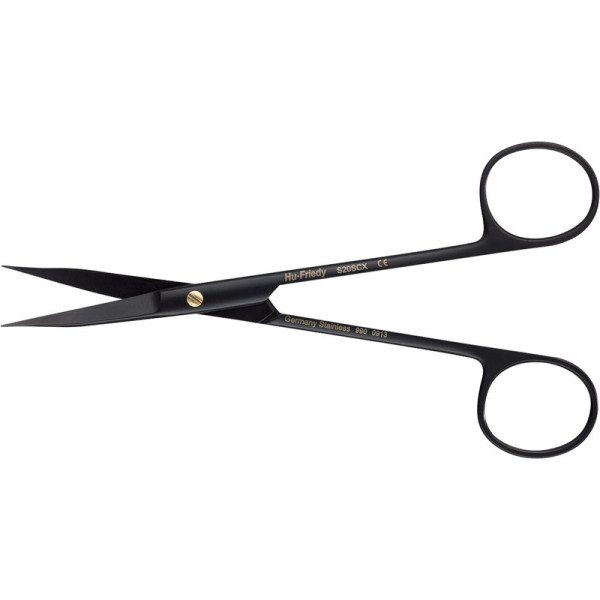Optimale Anwendung und beste klinische Ergebnisse standen bei der Entwicklung der Hu-Friedy Black Line im Vordergrund. Die Instrumente behalten ihre Effizienz auch bei ausgedehnten chirurgischen und parodontologischen Operationen. Zusätzlich zu den Black Line Handinstrumenten gibt es nun auch sieben Black Line Super-Cut Scheren für beste klinische Ergebnisse.Super-Cut Ausführung mit rasiermesserscharf geschliffenen Schneiden bieten einen atraumatischen Schnitt des Gewebes, kleine Zacken andererseits verhindern ein Verrutschen des Gewebes zwischen den BranchenLeistungsorientierte Beschichtung für optimale SchnittleistungMattschwarze Beschichtung für besten Kontrast zwischen Zahn, Gewebe und SchereReduzierte Lichtreflektion durch schwarzes MattfinishGoldfarbene Schraube für einfache Identifizierung der Super-Cut Ausführung Stück S20SCX nach Goldman-Fox, gerade, 135 mm