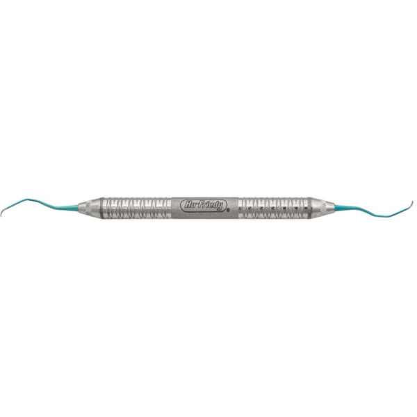 Erzielen Sie Bestleistungen mit der neuen, hochmodernen Reihe von Implantat-Instrumente aus Titan von Hu-Friedy. Diese Instrumente, die aus der gleichen Titanlegierung wie Implantate und Abutments bestehen, wurden für die Implantaterhaltung, Wundausschneidung und Biofilmentfernung fachkundig entwickelt und hergestellt und können sowohl supra- als subgingival verwendet werden. Optimierte Instrumenteneigenschaften zur Implantaterhaltung mit der Fähigkeit, Zahnstein und Biofilm zu entfernen Verbesserte Sichtbarkeit mit Hu-Friedys charakteristischem türkisgrünem eloxierten Titan Ergonomisches Feingefühl durch unseren Ergo-Griff, der einen großen Durchmesser und ein Kreuzschliff-Design für maximale Griffigkeit und festen Halt bietet Optimale Schärfe mit Schneidkanten, die nach der Eloxierung fein geschliffen und geschärft werden Gesteigerter Instrumentenwert mit der Möglichkeit, jederzeit geschärft zu werden, um die Nutzungsdauer des Instruments zu verlängern Stück IMPM13/14T