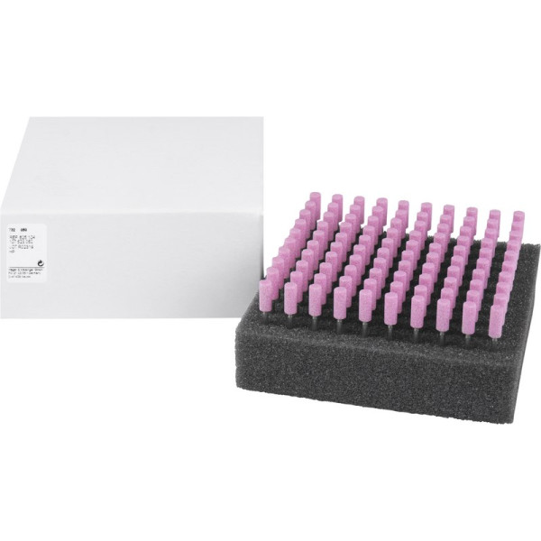 Keramische Schleifer braun, Bindung hart. Spezialschleifkörper für Chrom-Kobaltlegierungen.Keramische Schleifer hellbraun, Bindung weich. Spezialschleifkörper für Chrom-Kobaltlegierungen.Keramische Schleifer rosa, Bindung hart. Spezialschleifkörper für Chrom-Kobaltlegierungen.Keramische Schleifer weiß, Bindung sehr hart. Spezialschleifkörper für Chrom-Kobaltlegierungen. Packung 100 Schleifer rosa ISO 050, HP