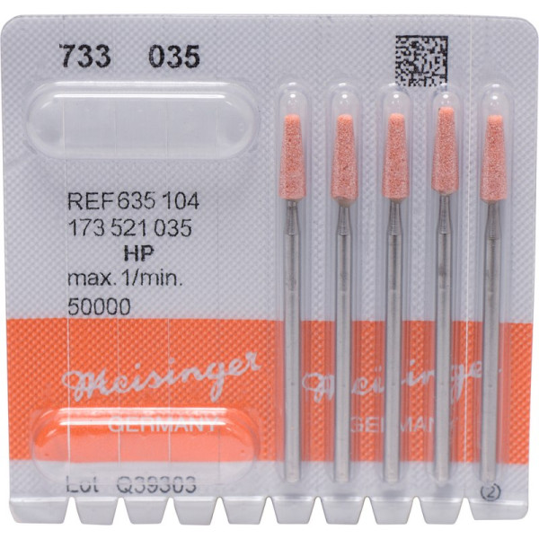 Keramische Schleifer braun, Bindung hart. Spezialschleifkörper für Chrom-Kobaltlegierungen.Keramische Schleifer hellbraun, Bindung weich. Spezialschleifkörper für Chrom-Kobaltlegierungen.Keramische Schleifer rosa, Bindung hart. Spezialschleifkörper für Chrom-Kobaltlegierungen.Keramische Schleifer weiß, Bindung sehr hart. Spezialschleifkörper für Chrom-Kobaltlegierungen. Packung 5 Schleifer hellbraun ISO 035, HP