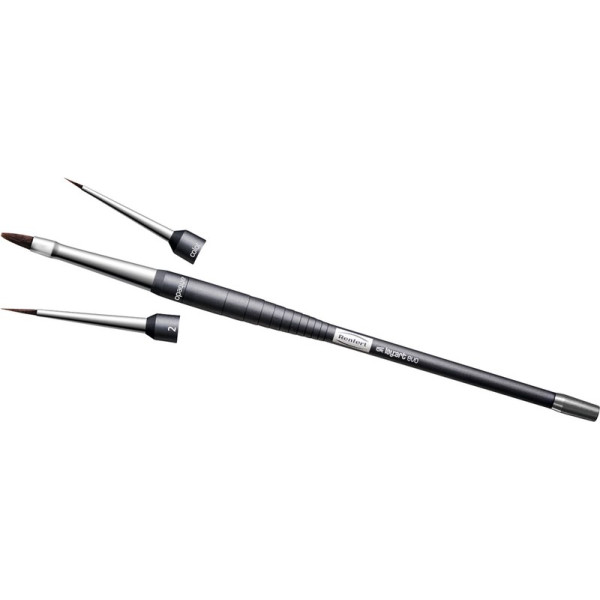 - Pinselgriff in verschiedenen Größen aus hochwertig eloxiertem Aluminium mit fein ausgeklügelter Ergonomie.