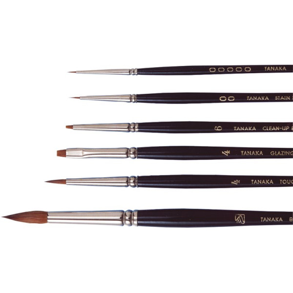 Der Original TANAKA Big Brush mit standfester Spitze ermöglicht feinste Schichtungen. Die Keramik wird beim Schichten gleichmäßig feucht gehalten. Damit werden Keramiksprünge verhindert.TANAKA Touchup BrushEr wird für kleinere Keramikkorrekturen verwendet.TANAKA Glaze BrushMit der stumpfen Kante können Sie ein Minimum an Glasurmasse in die Oberflächenrauhigkeit der gebrannten Keramik "einreiben", ohne eine Glasurmassenschicht zu bilden. TANAKA Stain BrushDie feine, aber trotzdem feste Spitze eignet sich ideal, wenn Fissuren bemalt und feine Linien im Zervikal- und Interdentalbereich präzise gezeichnet werden sollen. TANAKA Cleanup BrushNach dem Auftragen der Keramik und vor dem Brand werden das Kroneninnere und der Zervikalrand mit dem - trockenen - Cleanup Brush von Streupartikeln befreit. TANAKA Micro BrushMit der sehr langen und feinen Spitze können auch tiefe Stellen im Okklusal- und Inderdentalbereich gezielt bemalt werden. Stück Pinsel Micro Brush