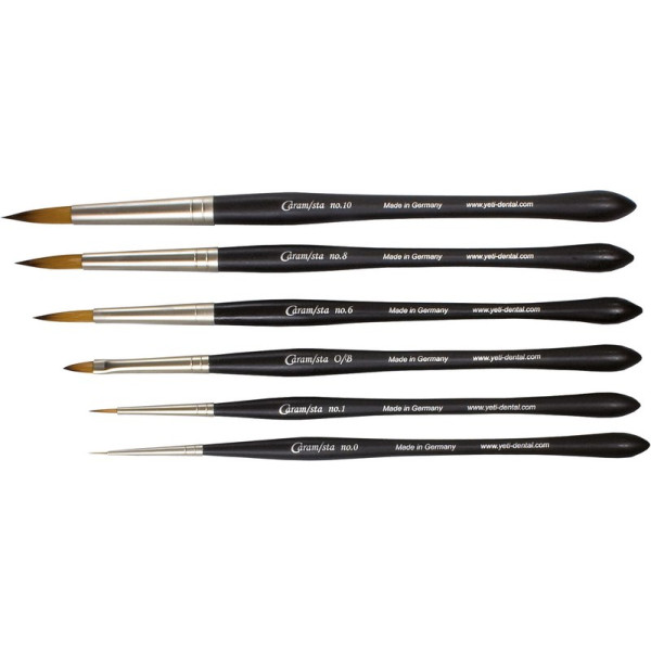 Feiner Pinsel mit HolzgriffSpeicherung des WasserreservoirHohe SpannkraftExklusives PinselhaarHandmade in GermanyZu jedem Zeitpunkt haarscharfe Spitzen zum Auftragen punktueller Keramikportionen und zusätzlich beim Abstreifen der Pinselhaare eine flächige Form zur Modellation der Keramik Stück Pinsel Gr. 10