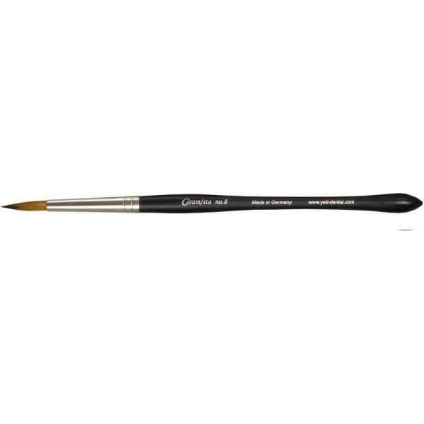 Feiner Pinsel mit HolzgriffSpeicherung des WasserreservoirHohe SpannkraftExklusives PinselhaarHandmade in GermanyZu jedem Zeitpunkt haarscharfe Spitzen zum Auftragen punktueller Keramikportionen und zusätzlich beim Abstreifen der Pinselhaare eine flächige Form zur Modellation der Keramik Stück Pinsel Gr. 8