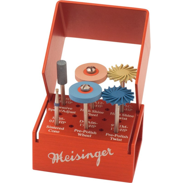 Die MEISINGER Twist Polisher Kits for Zirconia Ceramics enthalten die von Greg Campbell DDS empfohlenen Instrumente für die einfache und effiziente Bearbeitung von Zirkonoxid. Das Labor-Set enthält einen keramischen Schleifer um Kontaktpunkte zu Beschleifen, sowie einen langlebigen Sinterdiamanten für zusätzliche Definition der Okklusalfläche. Die flexiblen Twist Polisher erzeugen Hochglanz auf Ihren Zirkonrestaurationen und erhalten aufgrund des materialschonenden Designs die ursprüngliche Oberflächenstruktur. Kit 6 Polierer (S805, 9735H, DCA06, 9771M, DCA12, 9771C)