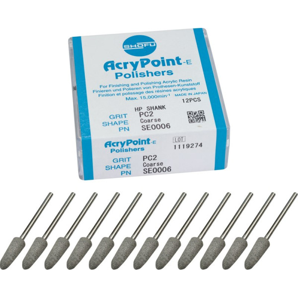 A AcryPoint szilikon polírozóknál alkalmasak csiszolás, befejező és polírozás műfogsor akrilok egyéb műanyag berendezések és Kunststoffabformlöffeln kell használni anélkül, hogy további polírozás paszták. Kóntúrmaráshoz csiszolás a durvaszemcsés sötétszürke AcryPoints használni. A befejező és előpolírozandó közepes szemű barna AcryPoints biztosított. Csiszolják a finomszemcsés világosszürke AcryPoints használni. Ajánlott fordulatszám tartomány: 5000 és 10000 ford / perc, max. Sebesség 15.000 ford / perc. / AD 3-5 N Nem intraorális alkalmazás használható!Csomag 6 Polisher HP, barna közepén, ISO 100