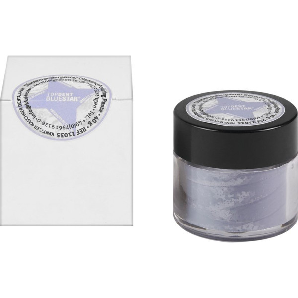 TOPDENT BLUESTAR® polírozó paszta. Nagyon koptató és gazdag gyémánt csiszolás paszta pre- és magasfényű lakk cirkon kompozit dentálkerámia nem nemesfém ötvözetekDózis gyémánt polírozó paszta 40 g