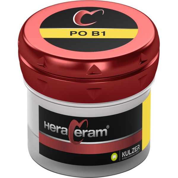 Hoch schmelzende Verblendkeramik.HeraCeram® ist die hochschmelzende Verblendkeramik für Aufbrennlegierungen in einem WAK-Bereich von 13,5 – 14,9 μm/mK. Aufgrund der niedrigen Brenntemperaturen von maximal 880 C können alle Legierungen in diesem WAK-Bereich sicher verarbeitet werden. Zur ästhetischen Gestaltung bietet HeraCeram®neben optimal auf einander abgestimmte Opaker, Dentin- und Schneidemassen ein umfassendes Sortiment an Individualmassen. Sie erzielen auch bei geringen Schichtstärken zuverlässige Farbergebnisse. Die Standfestigkeit der Massen und der geringe Brennschrumpf sorgen für eine hohe Formstabilität der Verblendung. Mit einer dichten, extrem glatten Oberfläche schützt HeraCeram®den Antagonisten und sorgt für hohe Plaqueresistenz und Gingivafreundlichkeit. Dose 2 ml Paste opaker PO B1