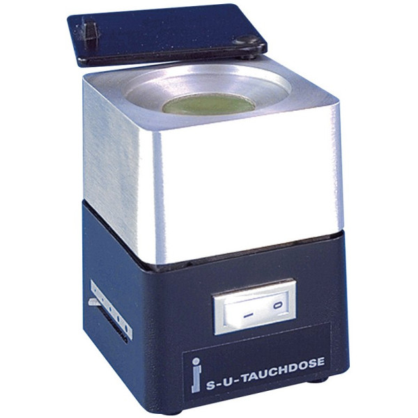 Elektrisch beheiztes Gerät mit stufenloser Regelung zwischen 80° und 105° C für die sekundenschnelle Herstellung von Wachskäppchen. Ein massives Metallgehäuse um den Schmelzbehälter bewirkt ein langfristiges Nachwärmen des Wachses. Stück Tauchwachsgerät Technische DatenAbmessung (B x H):85 x 120 mmTiefe mit Schalter:90 mmGewicht mit Wachs: ca. 1 kg Leistungsaufnahme: 50 W Netzspannung:230 V 50/60 Hz Wachsinhalt: ca. 25 gWandstärke d. Käppchen: ca. 0,3 mmAufheizzeit auf ca. 180°C: 15 Minuten