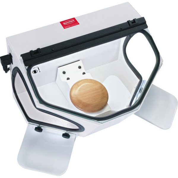Die kipp- und rutschsichere Absaugbox Dustex master plus schützt vor Splittern, Staub und Dämpfen. Eine ergonomisch durchdachte Form und höhenverstellbare Armauflagen ermöglichen freies, bequemes Arbeiten. Freie Sicht durch Absaugwirkung direkt am Objekt. Maximale Bewegungsfreiheit dank großem Innenvolumen (17 l). PerfectView: Innovative LED-Technologie für beste Konturen- und Detailerkennung. 3 Jahre Garantie. Stück Absaugbox inklusive Leuchtkörper mit Lampenabdeckung, Absaugkanal-Kit, Armauflagen Technische DatenAbmessung (B x H x T): 380 x 285 x 400 mm Gewicht: 5 kg Netzspannnung: 230 V / 50 - 60 Hz Leistungsaufnahme Beleuchtung: 17,3 W Saugstutzen Ø für externe Absaugung: innen: 35 mm, außen: 40 mm Kabellänge: 2 m Arbeitsraum: 17 lGarantie: 3 Jahre