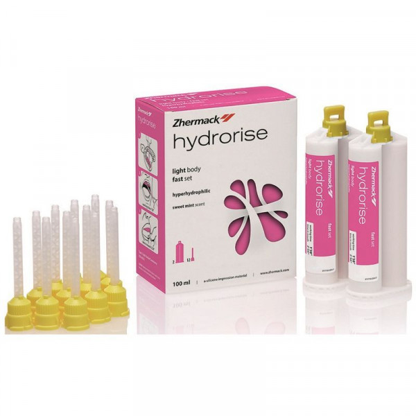 hydrorise® Light Body Fast zeichnet sich durch seine extreme Thixotropie aus. Die neueste Technologie macht Hydrorise überaus wasserähnlich und verdrängt daher sehr gut die Feuchtigkeit im Mundbereich. Dünnfließend Extrem reißfest Schnellabbindend Leichtes Pfefferminzaroma Mit neuester, extremer Hydrophilie Höchste präzise und zeichnungsgenau Packung 2 x 50 ml Doppelkartusche
