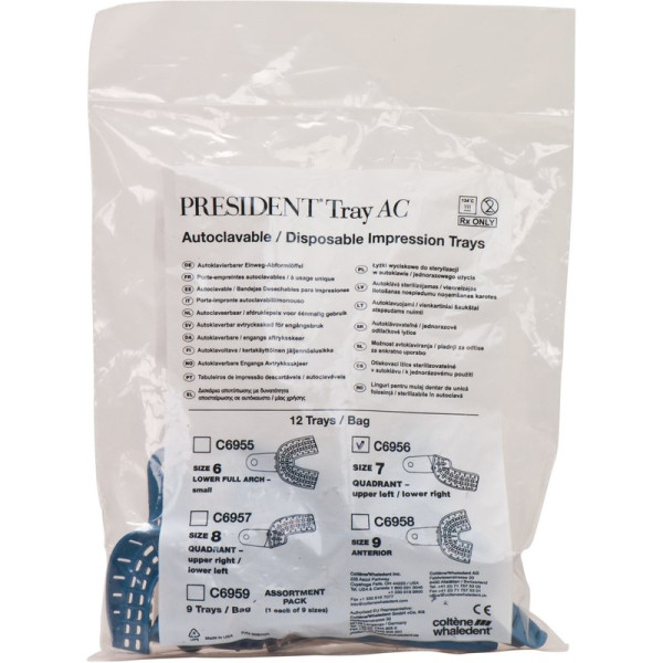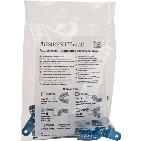 PRESIDENT® Abformlöffel AC - Packung 12 Stück Quadrant OK rechts, UK links Gr. 8 - C6957