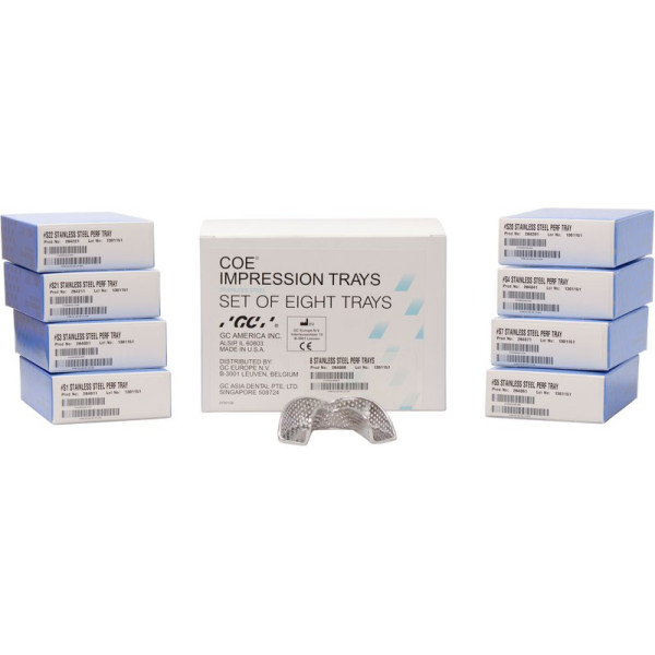 GC COE® Impression Tray regular RS – Készlet 8 (felső-S1, felső-S3, felső-S4, felső-S5, felső-S7, alsó-S20, alsó-S21, alsó-S22), perforált.